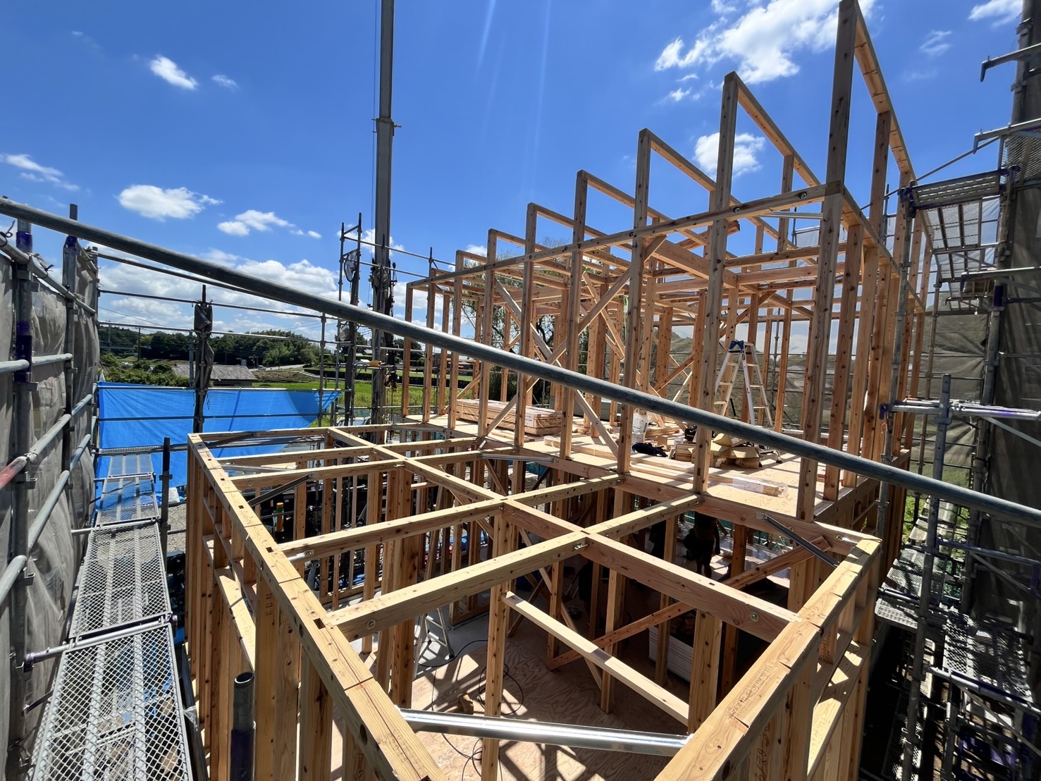 少しずつ組み上がっていくその様子は、図面では味わえない迫力と感動があり、ご家族にとっても私たちにとっても貴重なこの日はおめでたい日です✨
