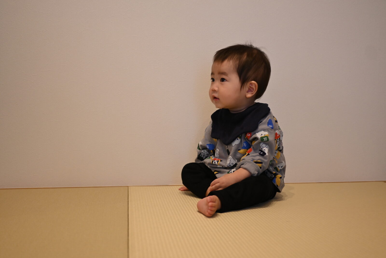 畳スペースで座るお子様。