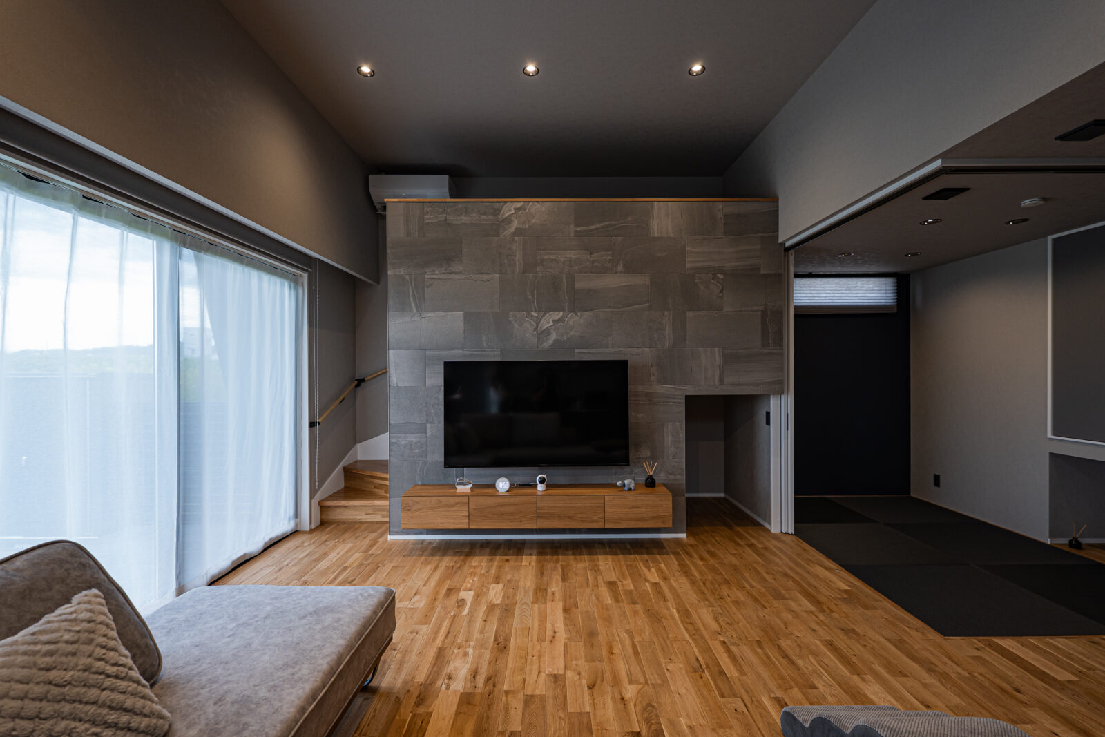 タイルデッキから広がる大きな庭が、日常に癒しと彩りを。