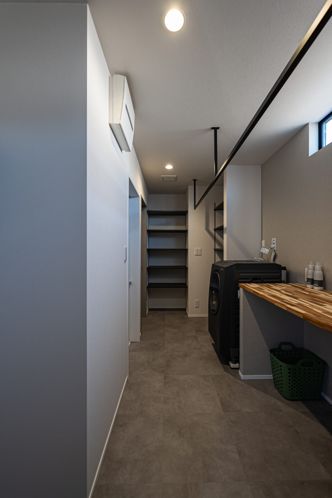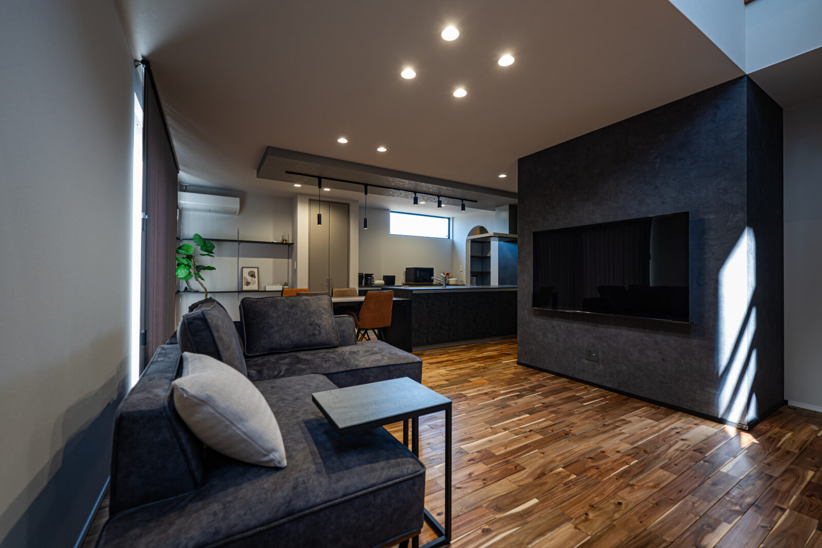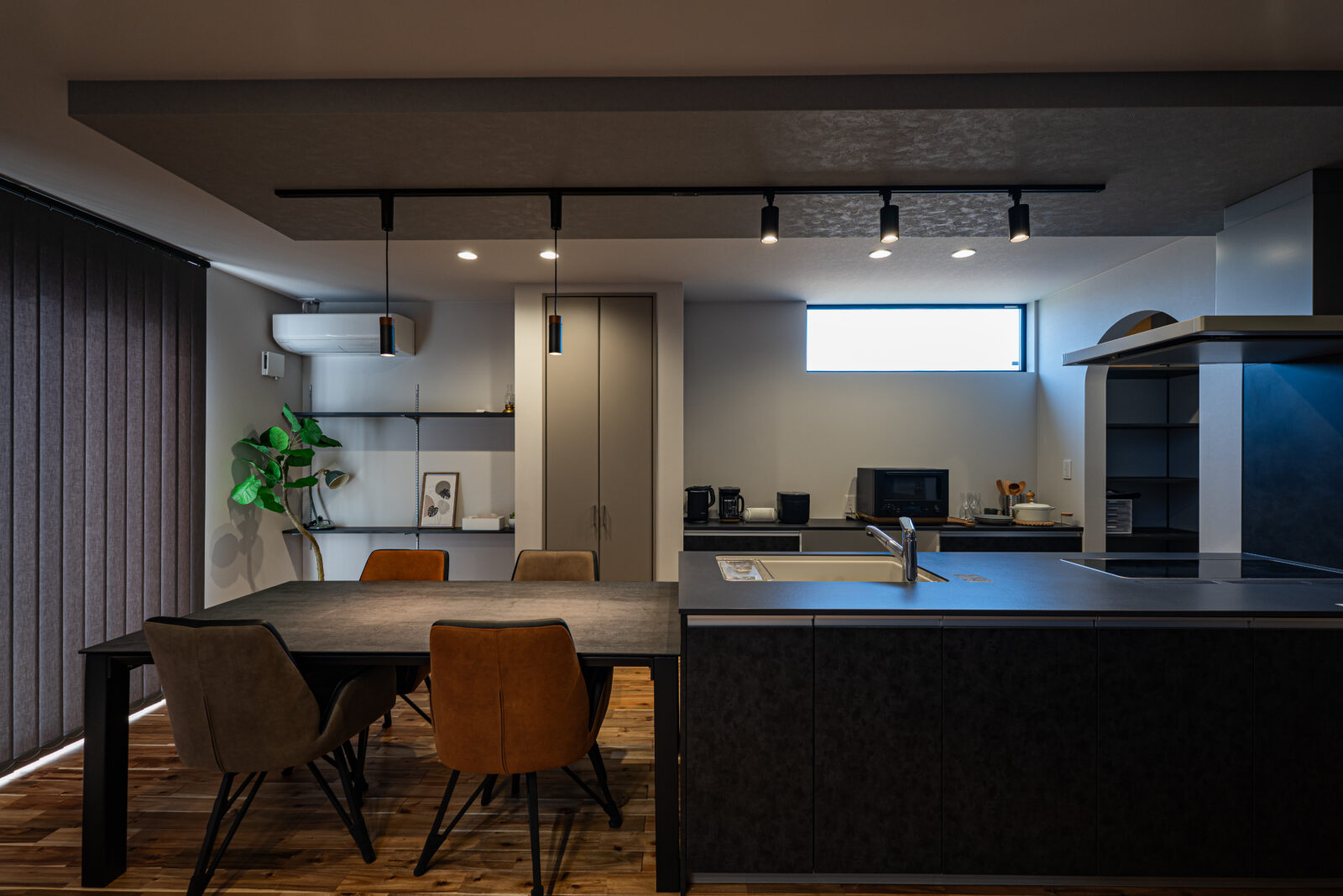 間接照明が生み出す陰影が空間を引き締めます。
